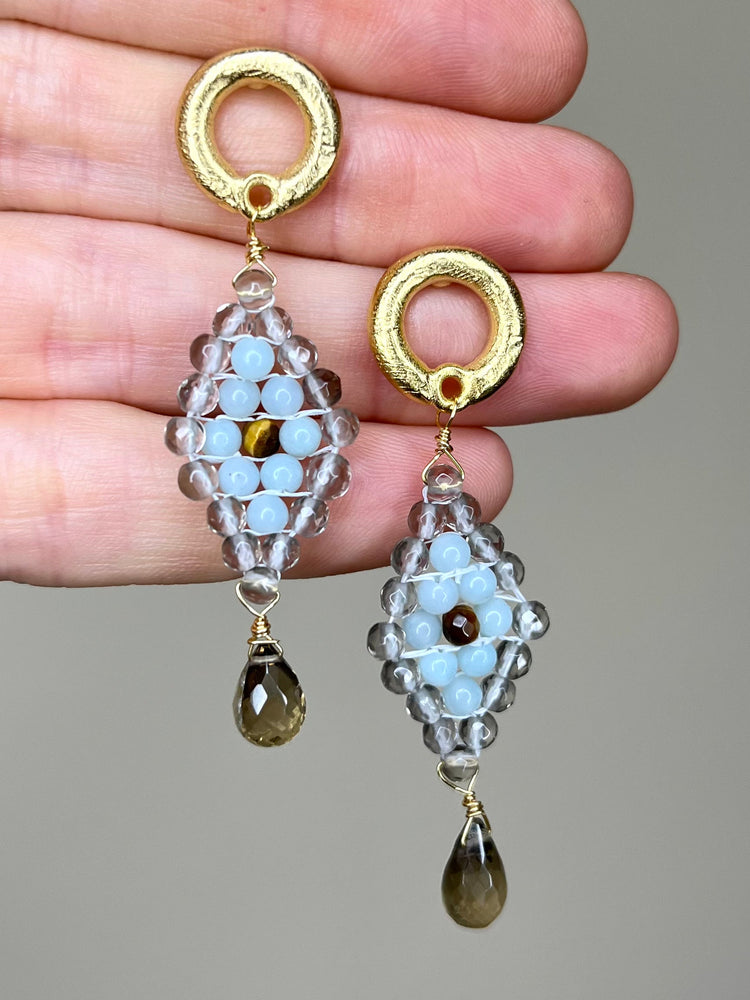 This collection of sustainable jewelry consists of hand woven gemstones fabricated in many different iterations. Handwoven gemstones (rather than glass or plastic) is our secret sauce!