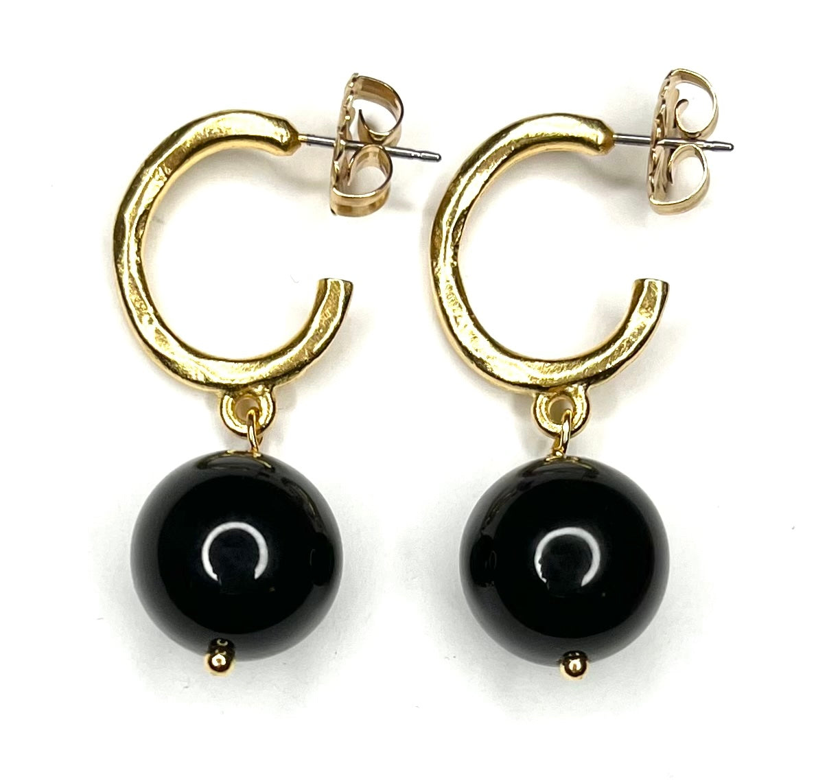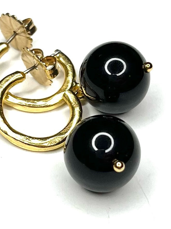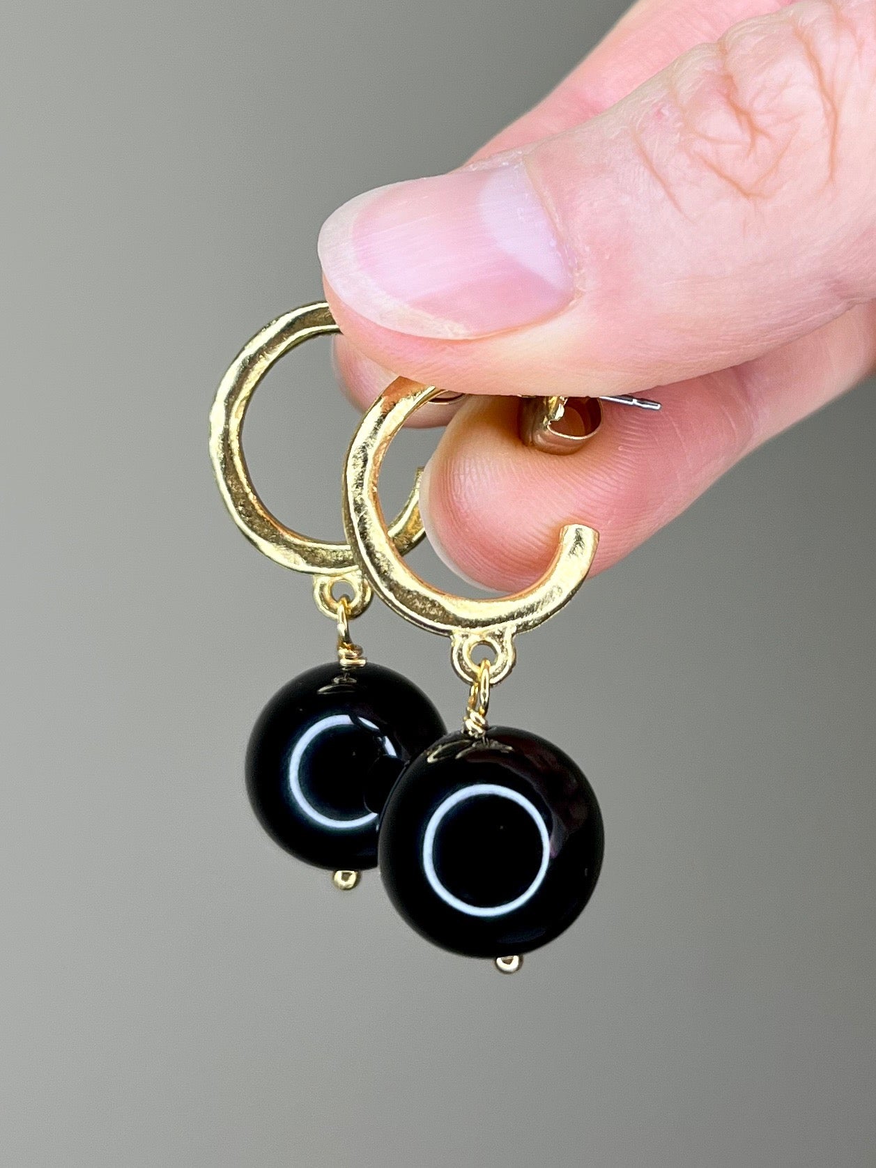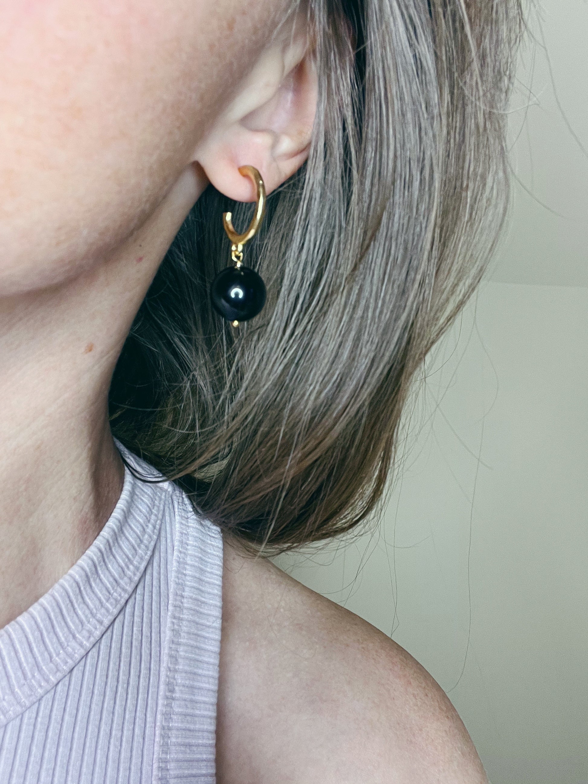 Satin Gold Plated Huggie and Black Onyx Drop- designed for the minimalist or classic woman who enjoys classic simplicity