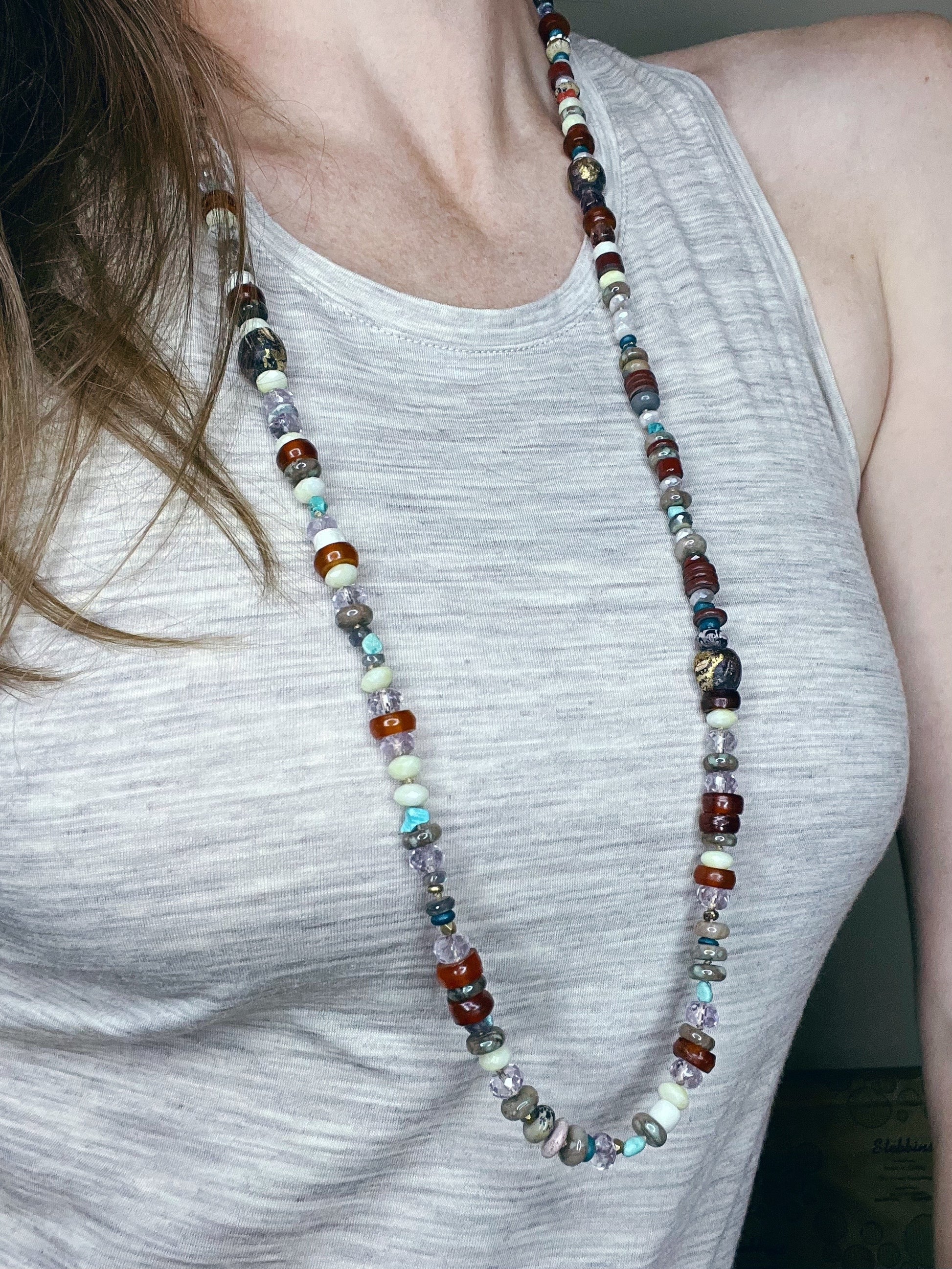 The Perfect Everyday Jewelry Made of Organic Materials- beautiful multi colored gemstone strand, hand knotting adds luxurious vibe