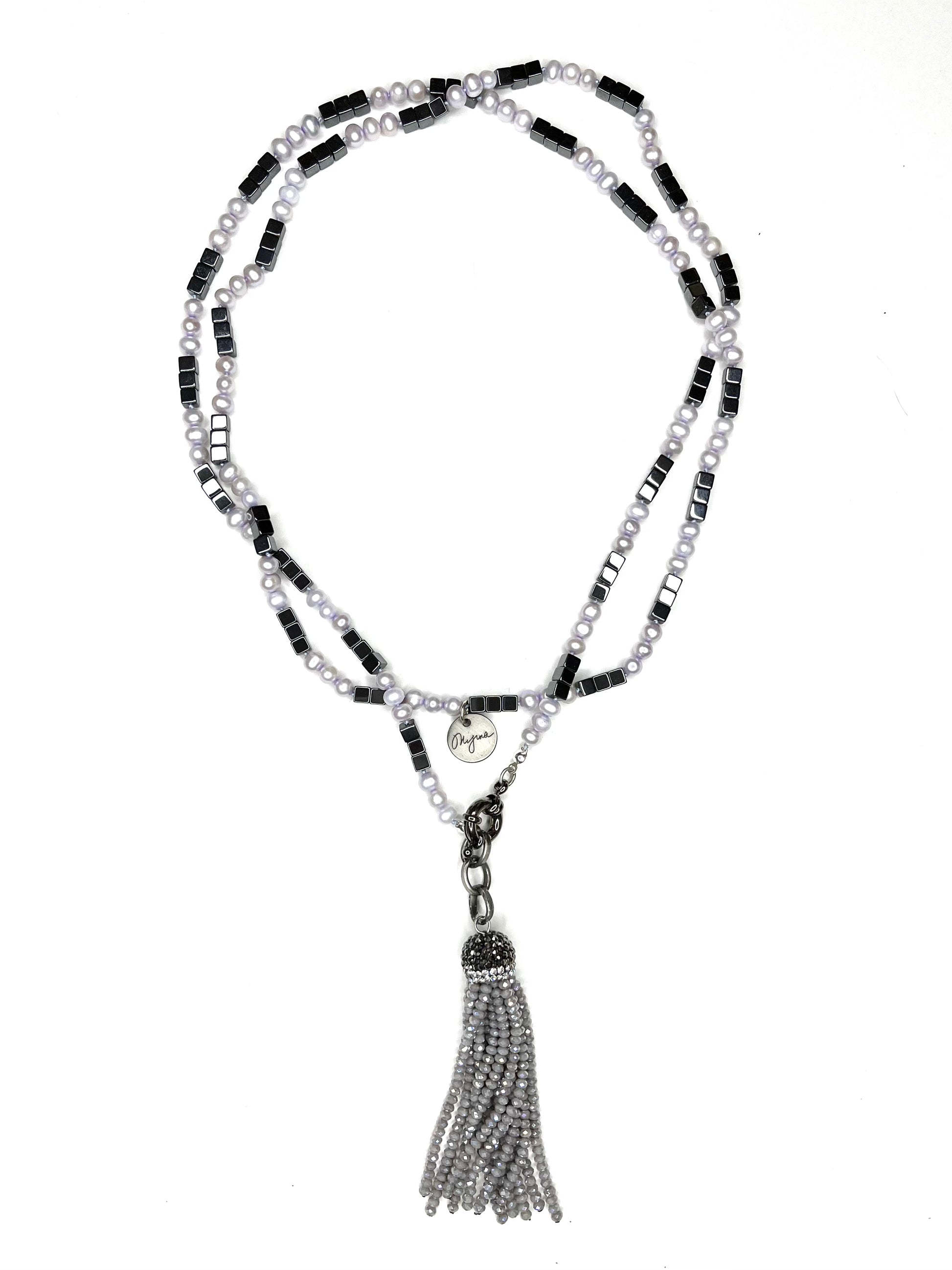 Effortlessly refined, this out on the town necklace features a pearl and hematitie composition that bridges old-world character with modern sensibility. Its fluid arrangement of natural elements creates a quietly striking presence—thoughtful, artful, and enduring.